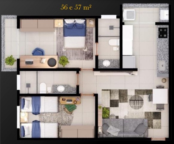 Apartamentos de 56 e 57 m²