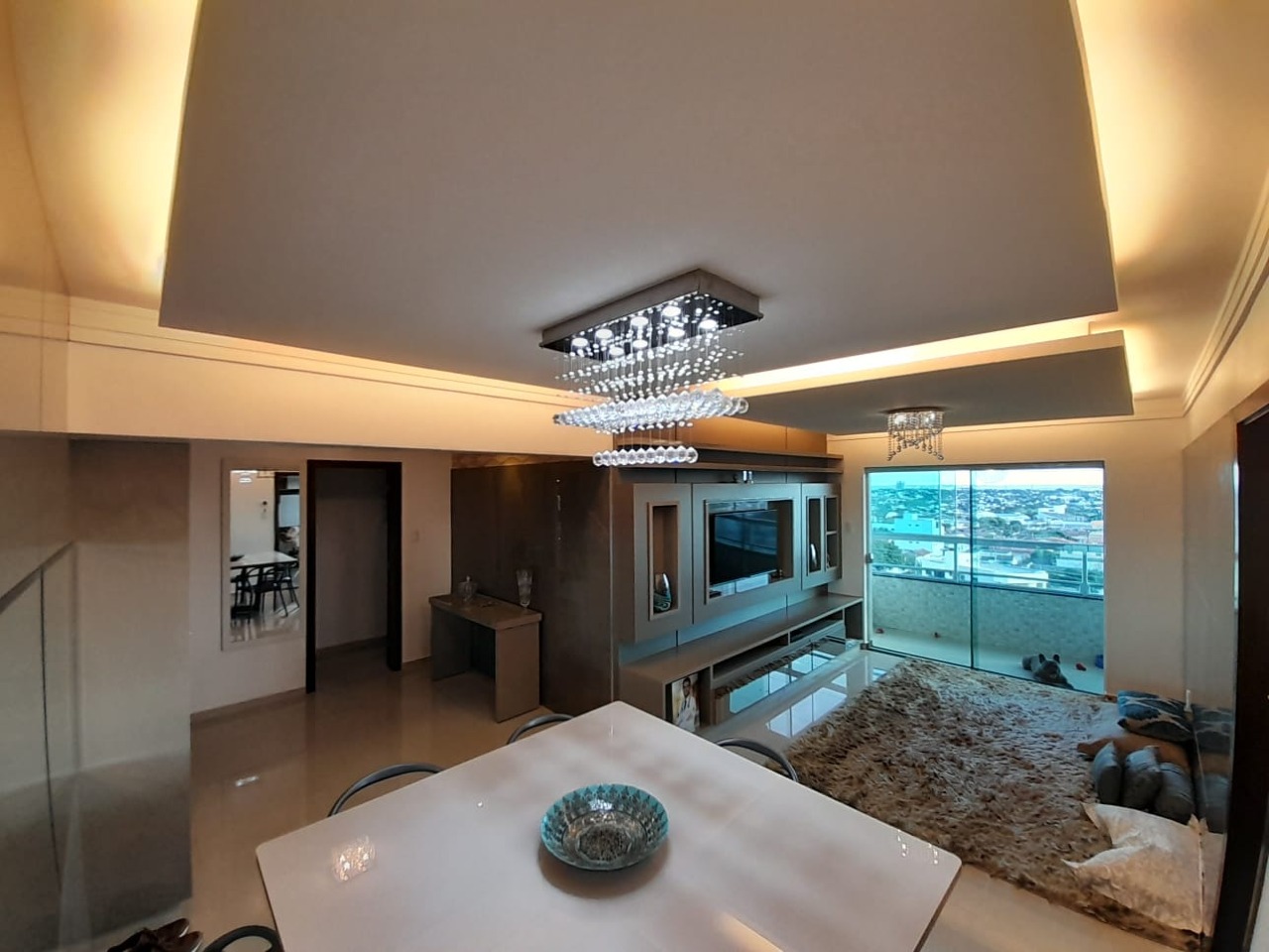 OPORTUNIDADE: VENDO LINDO APARTAMENTO NO EDIFÍCIO PALADIUM RESIDENCE. Situado em Uberlândia-MG, no bairro Saraiva, na Rua Benjamin Alves Santos, 2034, localizado no 8º° pavimento do Edificio Paladium Residence (último andar do edifício - oitavo andar), com vista para a zona nobre de Uberlândia (Zona Sul), para a o centro da cidade e zona leste, contando com belo pôr- do-sol- belíssima vista a qualquer hora do dia). Conta com ampla sala de TV e sala de jantar, com gesso que instalei e luminárias e lustres belíssimos. Dispõe de sacada ampla com churrasqueira que já veio no projeto do apartamento, 3 quartos (sendo 1 suite ampla e confirmação, com sacada na suíte e com ar condicionado também), banheiro social, cozinha toda montada e planejada, área de serviço com muitos móveis planejados de alta qualidade (tudo com nota fiscal), sacada com móveis planejados, enfim, tem móveis planejados em todas suas dependências. Fiz variadas instalações, benfeitorias (gesso - teto rebaixados, luminárias belíssimas, box nos banheiros, sacadas fechadas por blindex de alta qualidade e cortina, etc). Conta com 2 vagas de garagem com portão eletrônico, câmeras, sistema de segurança 24h e alarme. Excelente localização, próximo de farmácias, supermercado, estando poucos minutos do centro da cidade (inclusive a pé, pertinho). Pisos em porcelanato, muito bem cuidados, apartamento com poucos anos de uso. Estrutura excelente.