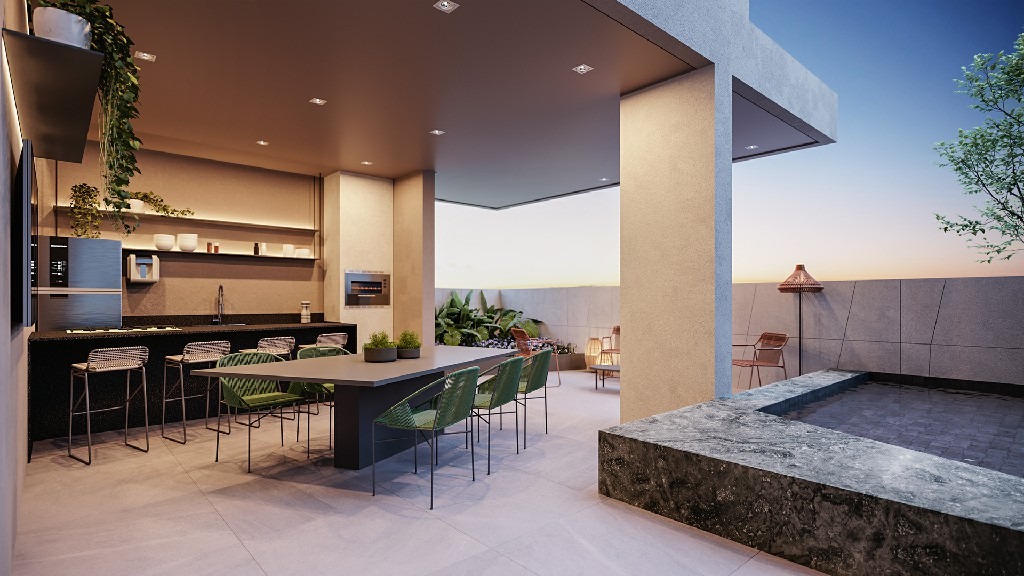 Salão de festas, Sauna, SPA, Espaço Kids, Espaço Family com piscina privativa, Academia, Salão de Jogos, Espaço Gourmet, Cinema, Coworking, Piscina Adulto e Piscina Infantil, Quadra de Beach Tênis, Pet Place,