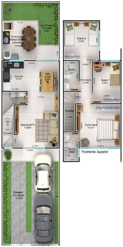 Garagem com aproximadamente 40m2 e quintal com aproximadamente 23,5m2.