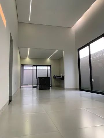 Sala em 2 ambientes com pé direito duplo e iluminação de fita de led