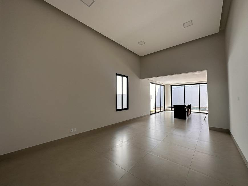 Sala em dois ambientes e com pé direito de 4,5m.