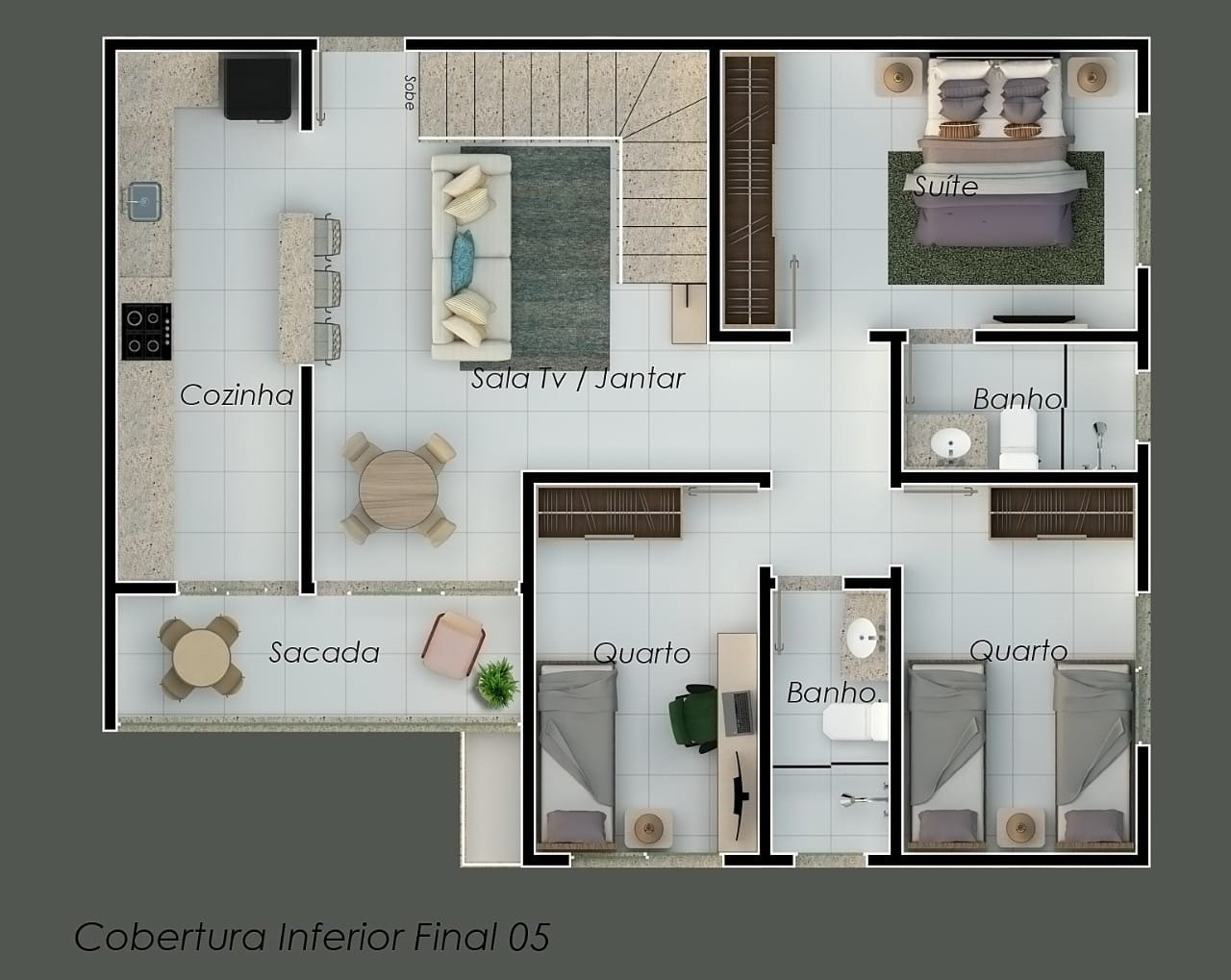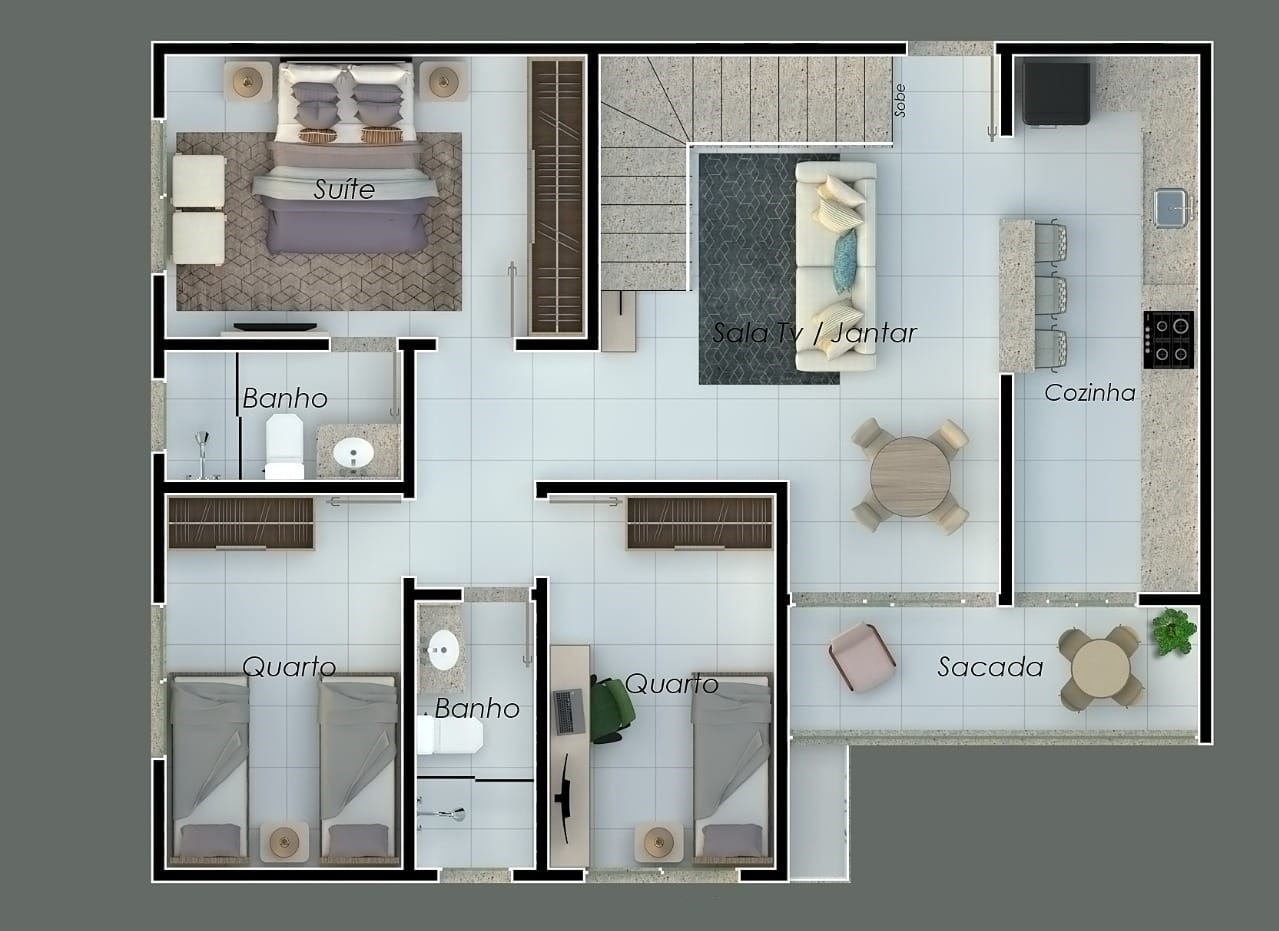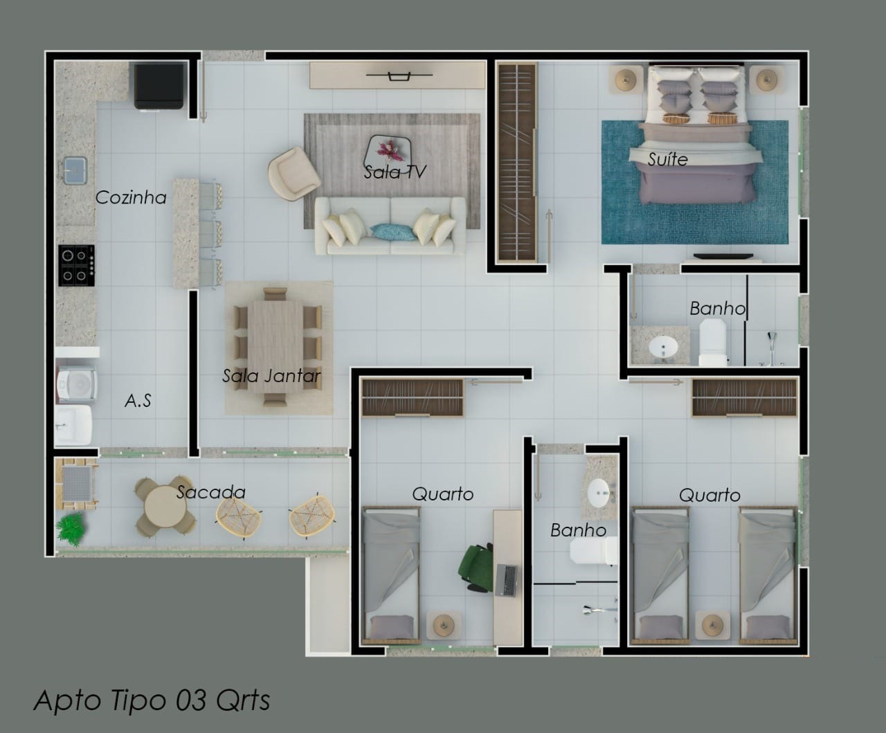 3 quartos, sendo 1 suíte,