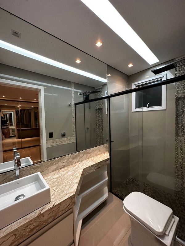 e banheiro social acompanhados com box, espelho e armário, cozinha com móveis planejados, banheiro na área de lazer, área de serviço, dispensa, sacada na sala e no quarto
